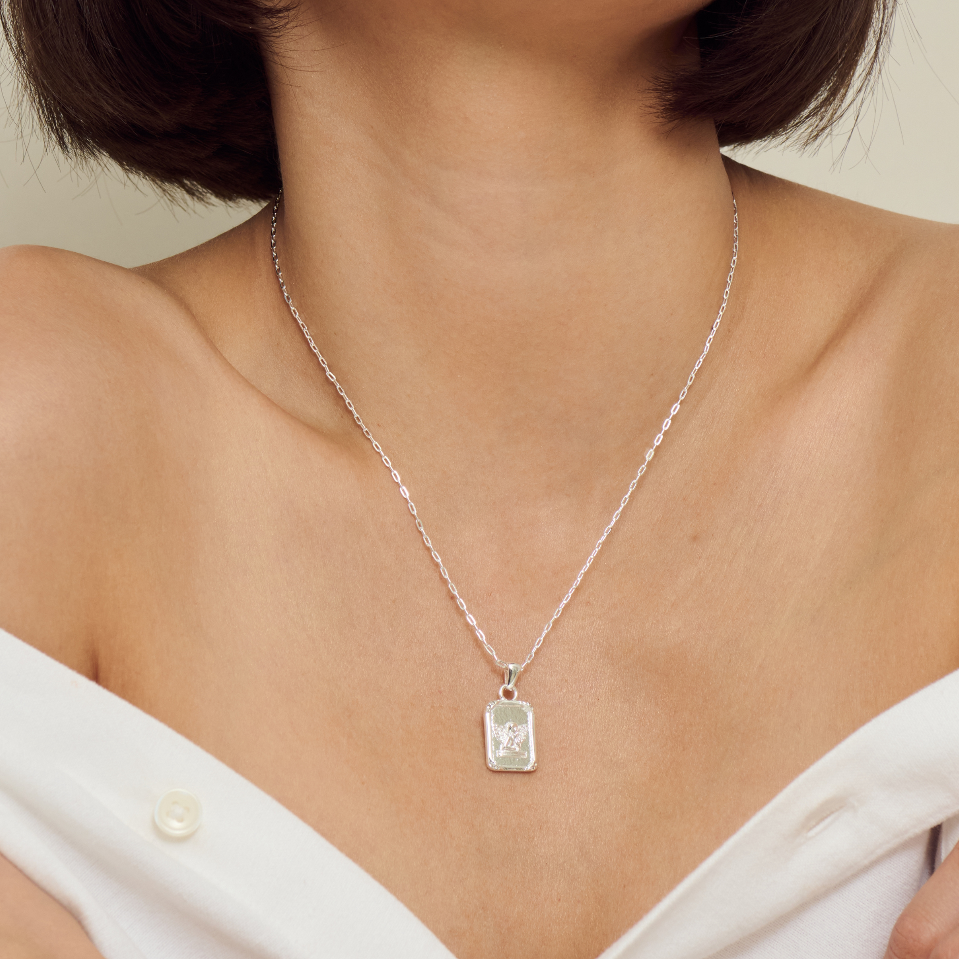 A timeless piece that blends elegance with sentiment. This angel pendant shines with your choice of a rich 14k gold or a cool sterling silver plated finish and delicate crystal details at each corner. The intricate design captures a serene, celestial charm.