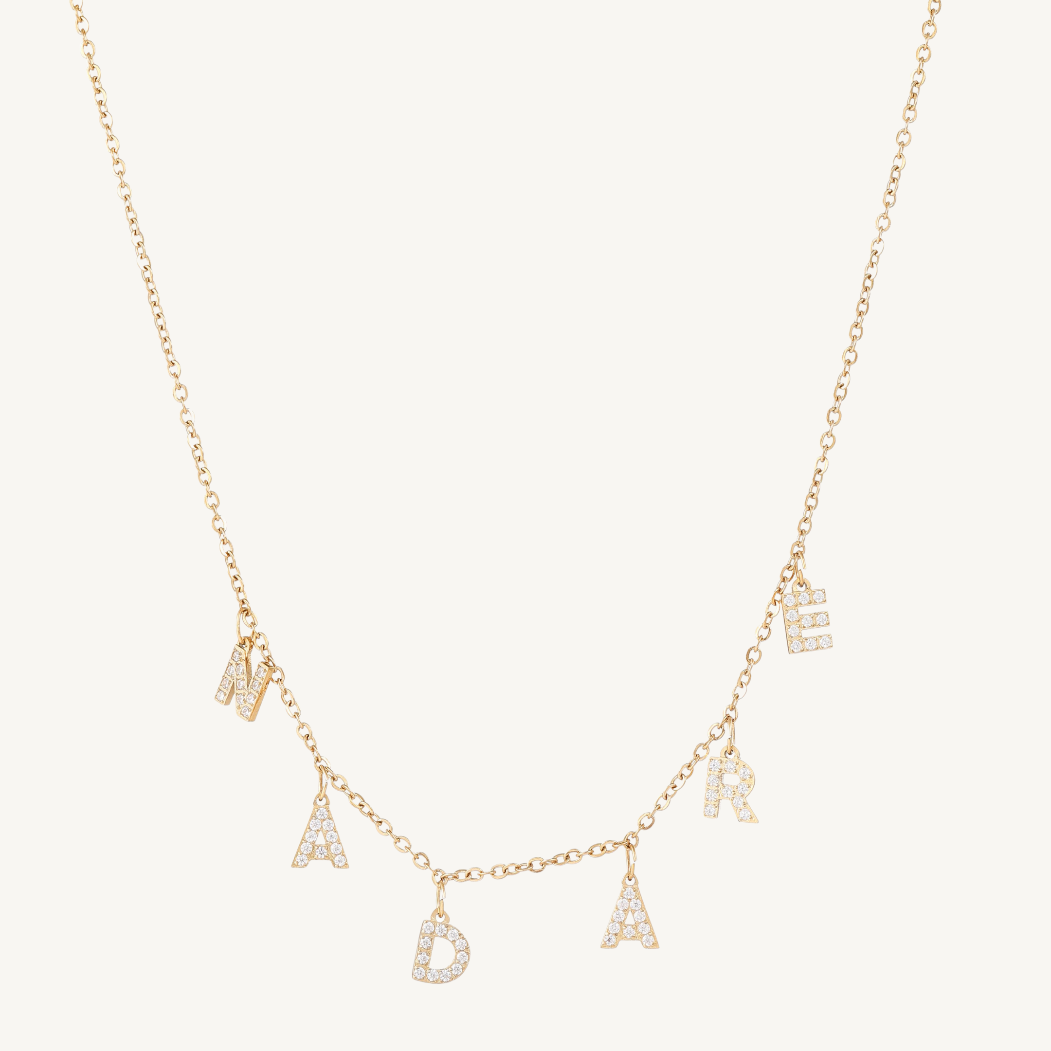 Make it yours. This sparkly letter necklace can be customized with up to 7 letters, perfect for a name, star sign, initials, or a meaningful word.