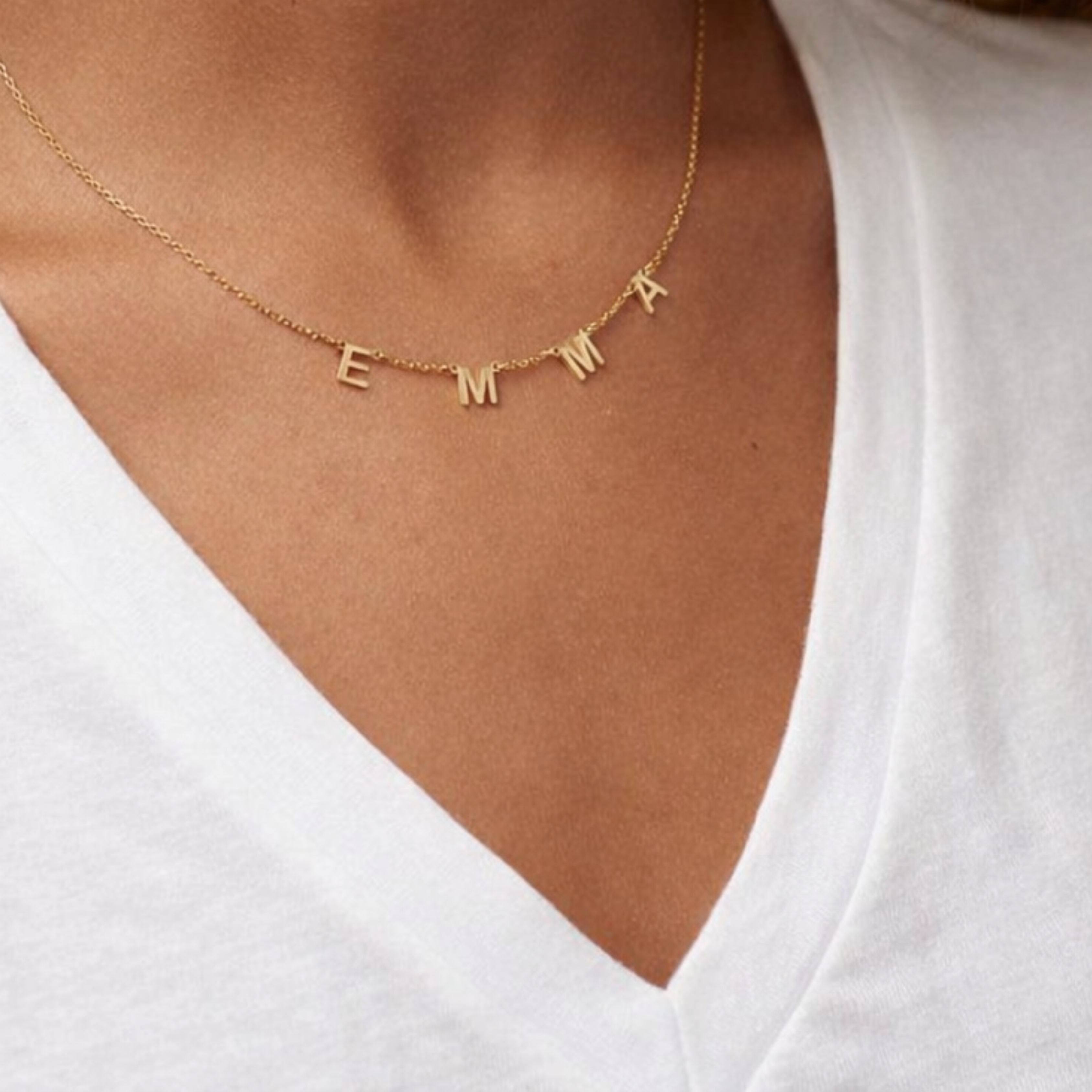 Make it yours. This minimalist letter necklace can be customized with up to 10 letters, perfect for your name, initials, or a meaningful word.