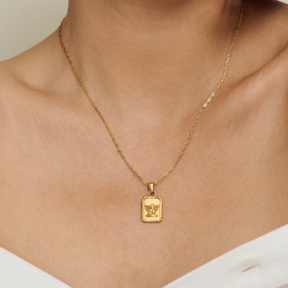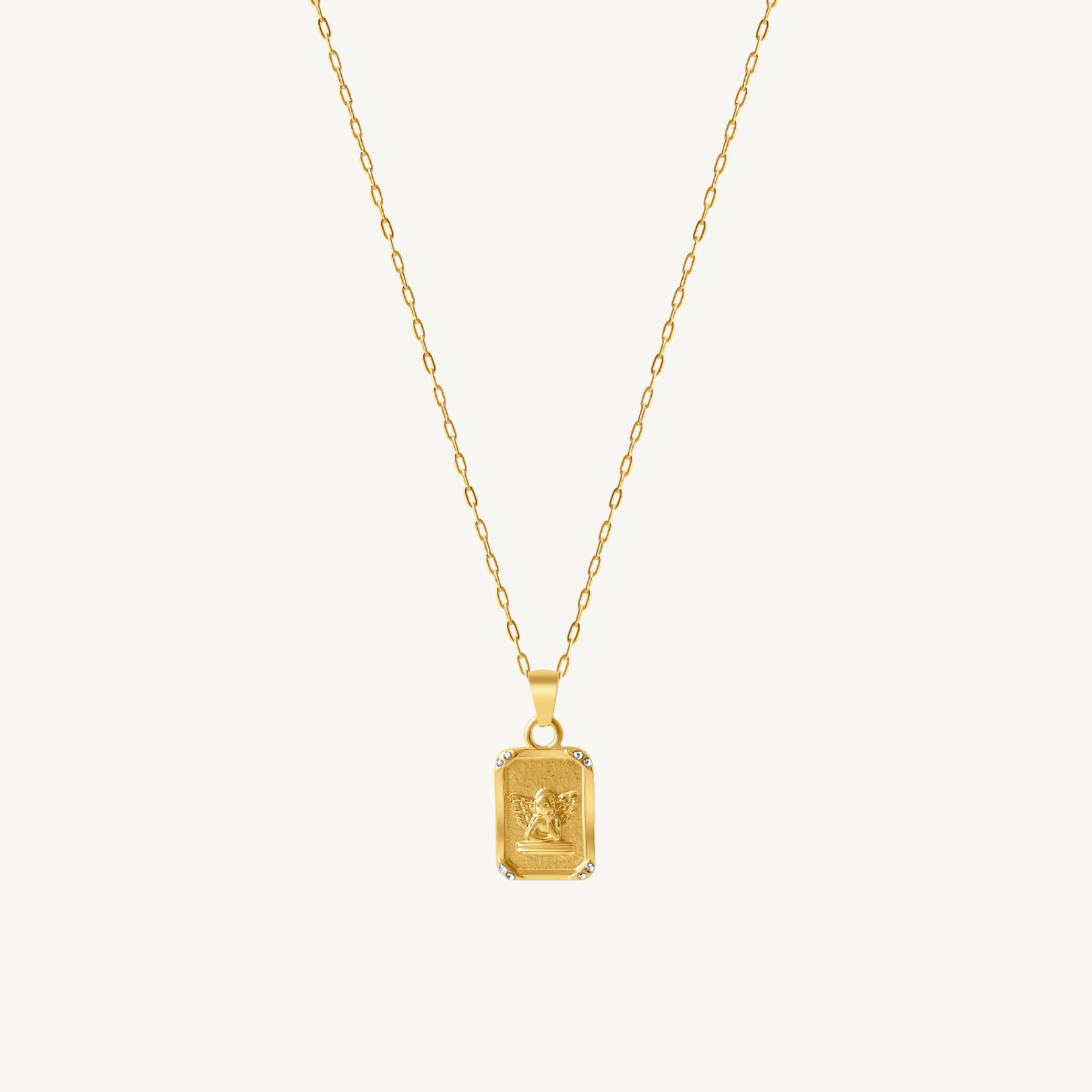 A timeless piece that blends elegance with sentiment. This angel pendant shines with your choice of a rich 14k gold or a cool sterling silver plated finish and delicate crystal details at each corner. The intricate design captures a serene, celestial charm.